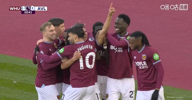 开场仅仅30秒,主场作战的铁锤帮前场逼抢,维拉中卫孔萨出现致命失误,马特乌斯-费尔南德斯断球直接小角度兜射破门,帮助球队主场闪击得手取得领先。